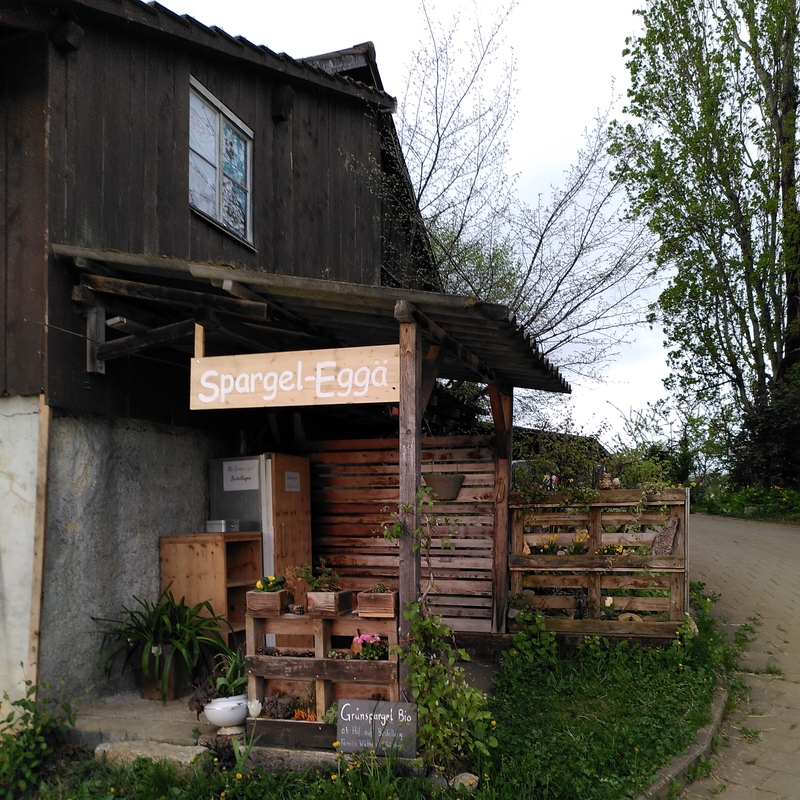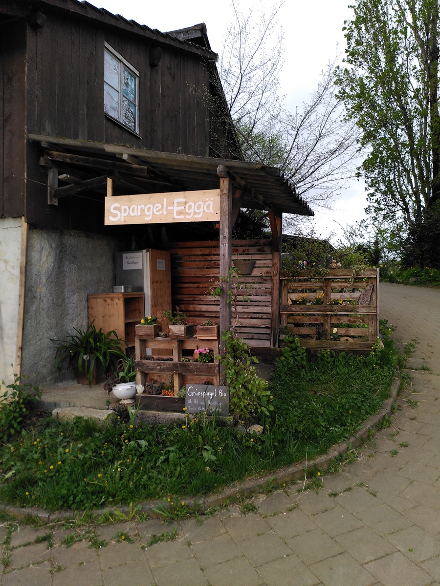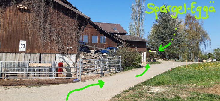 Abholung beim "Spargel-Eggä" auf dem Biohof Horn. Beschreibung siehe unten