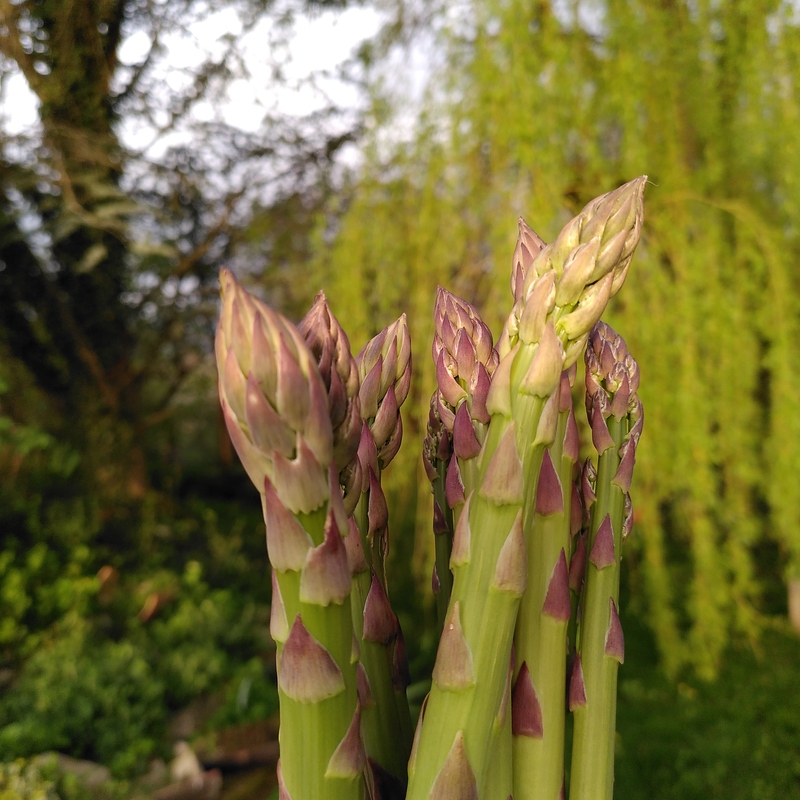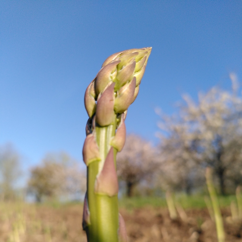 Die Spargelpflanze ist eine spinnenförmige Wurzel, aus dessen Mitte alljährlich im Frühling wieder mehrere Sprossen keimen. Die Sprossen kommen an die Oberfläche und wenn die Pflanze nicht angehäuft wurde, verfärben sie sich durch das Sonnenlicht grün. Bei angehäuften Spargelpflanzen werden die Sprossen unter dem Damm, also unterhalb der Erdoberfläche gestochen und heissen Bleichspargel oder weisser Spargel. Wir haben uns für den Anbau von Grünspargel entschieden, da unser Boden nur für diese Anbauart geeignet ist.