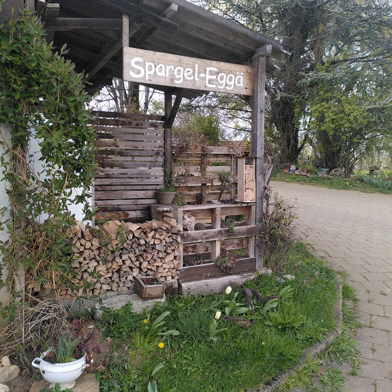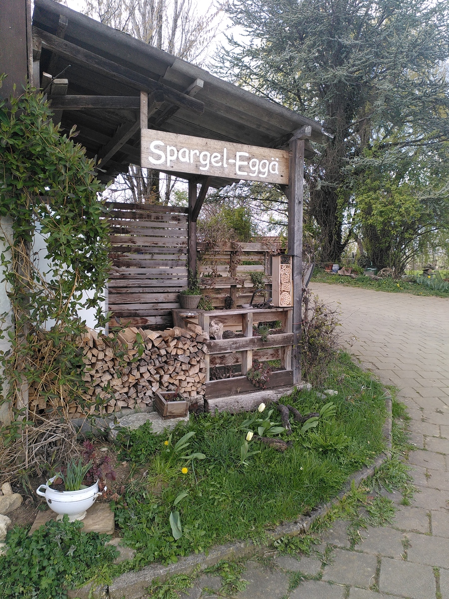 An der Ecke bei der Garage befindet sich der Spargel- Eggä mit dem Abhol- und Selbstbedienungsschrank.